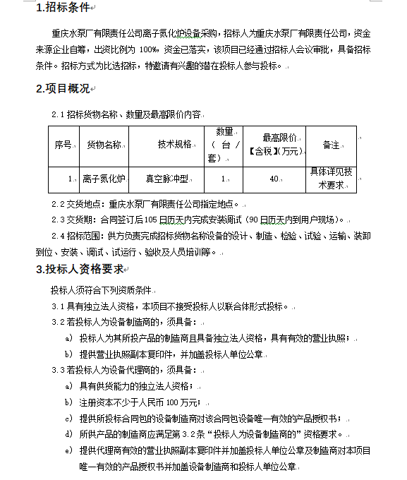 離子氮化爐 第三次招標(biāo)公告