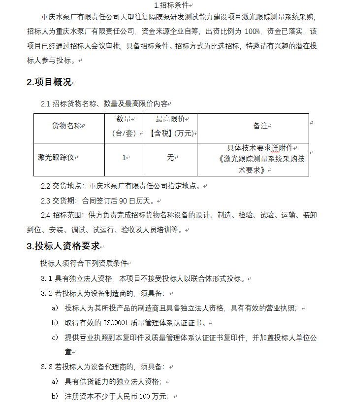 大型往復(fù)隔膜泵研發(fā)測試能力建設(shè)項目 激光跟蹤測量系統(tǒng) 招標(biāo)公告