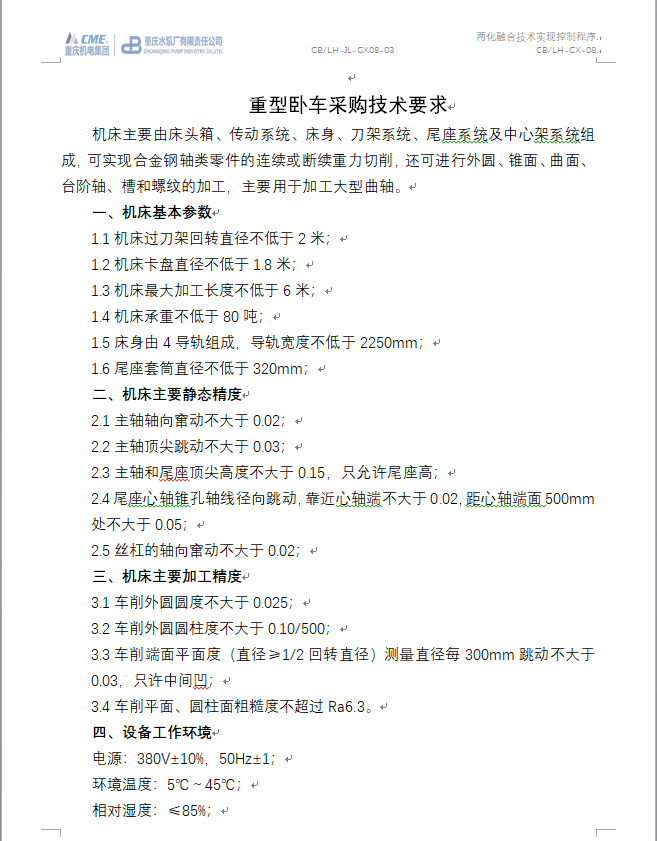 大型往復(fù)隔膜泵研發(fā)測試能力建設(shè)項目 重型臥式車床采購 招標(biāo)公告(第二次)